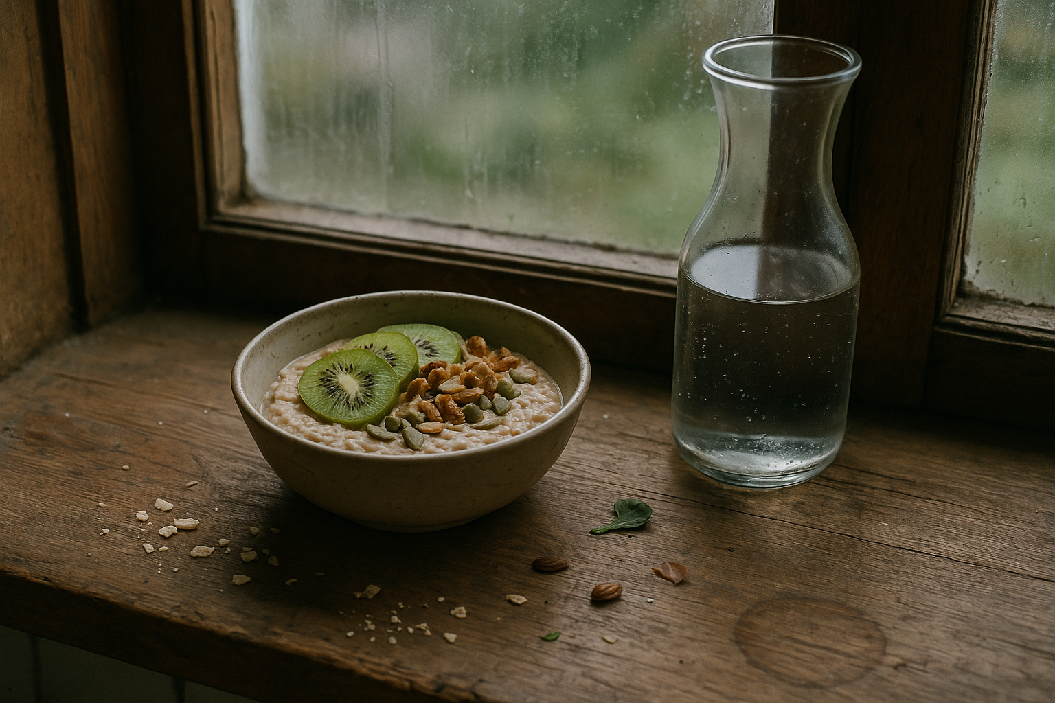 – Snacks: magnesium and vitamin C sources. Examples: pumpkin seeds, almonds, oranges, kiwi, or a small cocoa yogurt bowl with walnuts.