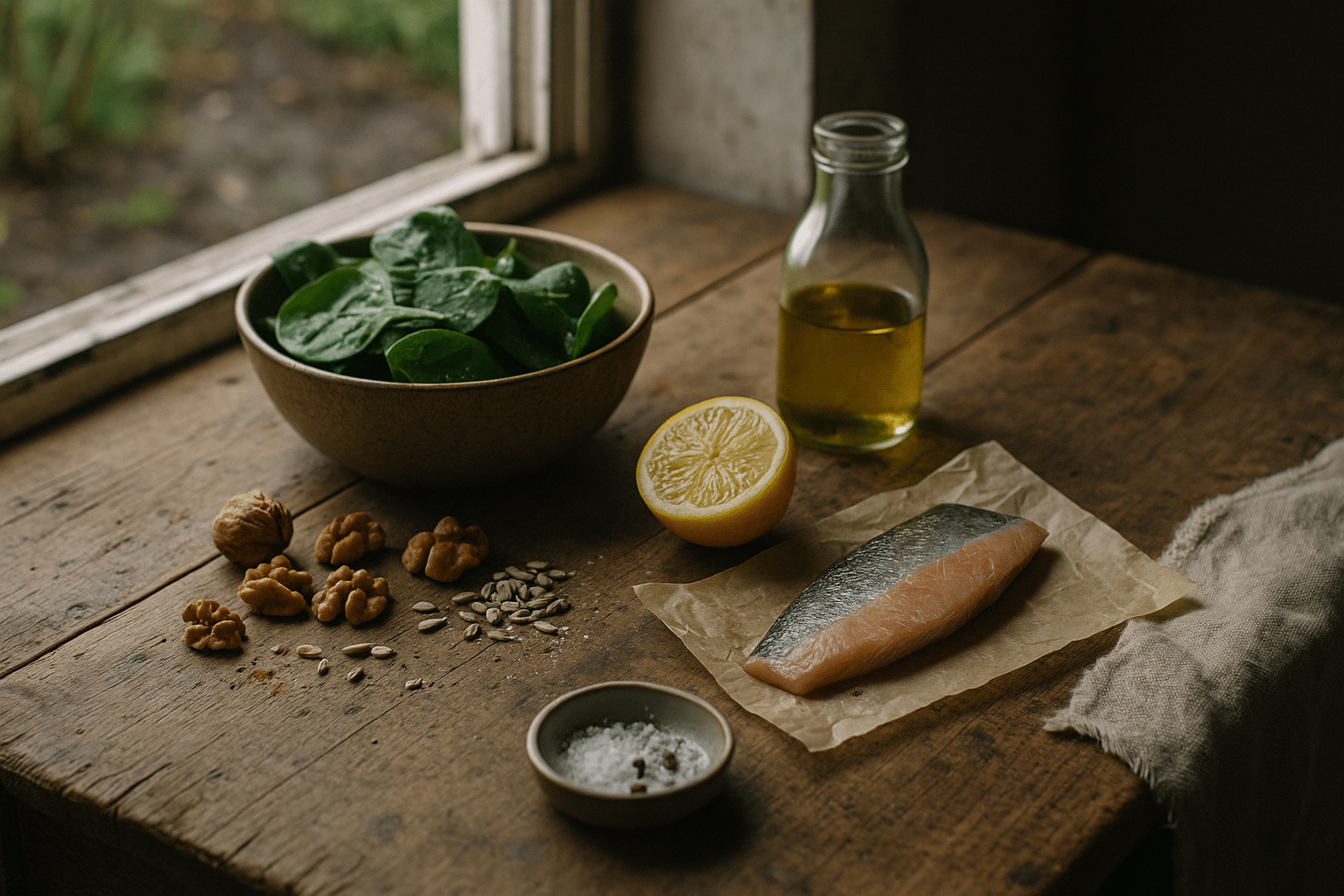A sample day might look like this: oatmeal cooked with milk or a fortified alternative, topped with walnuts and blueberries; a lunch salad of mixed greens, chickpeas, roasted peppers, and sunflower seeds with olive‑lemon dressing; a snack of yogurt or soy alternative with ground flax; and a dinner of baked fish or a legume stew with brown rice, sautéed spinach, and citrus on the side. Fluids, herbs, and spices—ginger, turmeric, garlic—add flavor and bioactive polyphenols that complement the nutrient base.