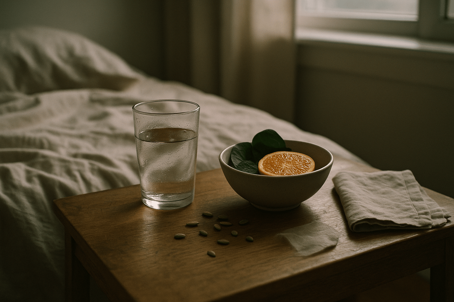 Magnesium: Als Cofaktor von über 300 Enzymen stabilisiert es die neuromuskuläre Erregbarkeit und unterstützt GABAerge Hemmung – quasi die Bremse im Nervensystem. In Studien mit älteren Erwachsenen wurden unter magnesiumreicher Ernährung oder moderaten Ergänzungen Verbesserungen bei Einschlafzeit und Schlafqualität beobachtet. Die Effekte sind nicht spektakulär, aber klinisch relevant, besonders wenn nächtliche Wadenkrämpfe oder innere Unruhe präsent sind. Gute Quellen sind Nüsse, Samen, Vollkorn und grünes Blattgemüse.